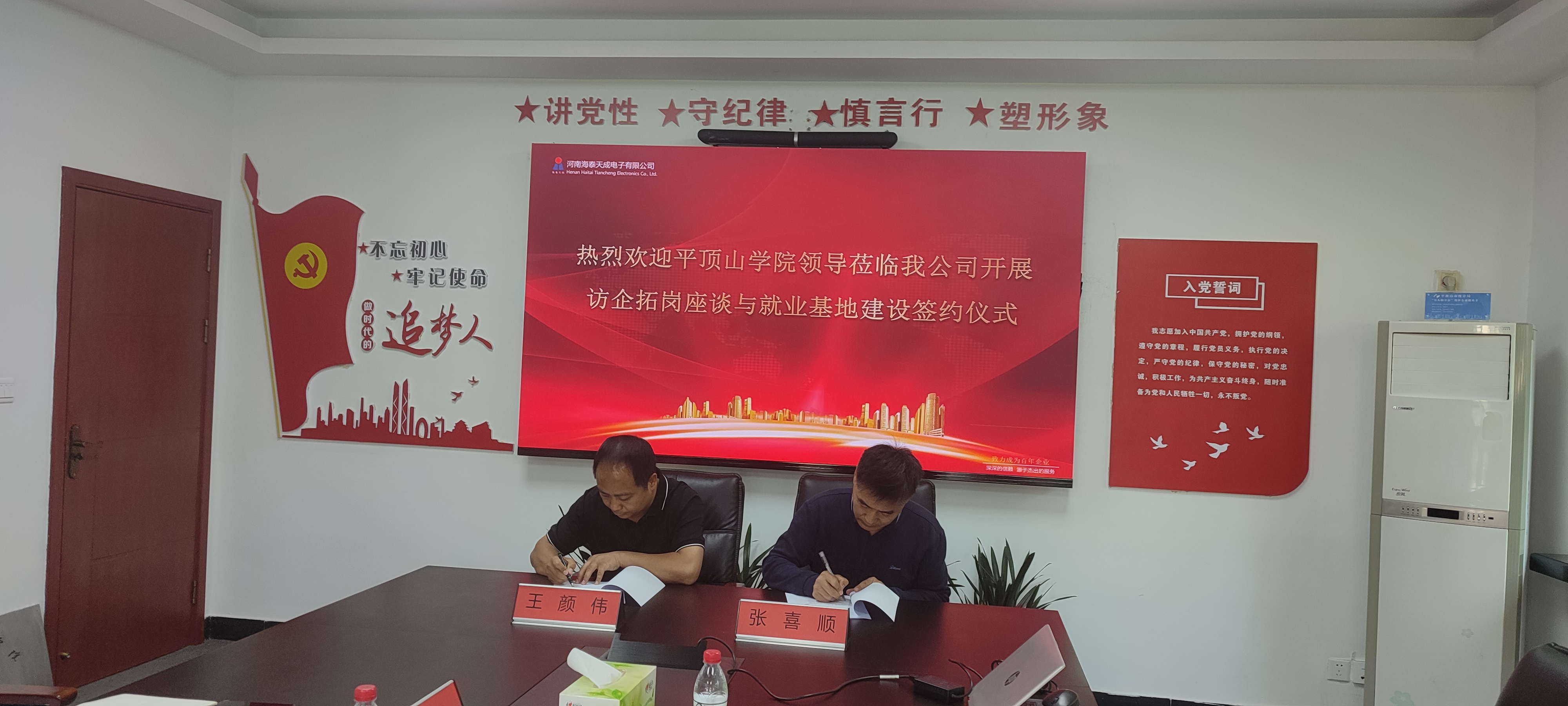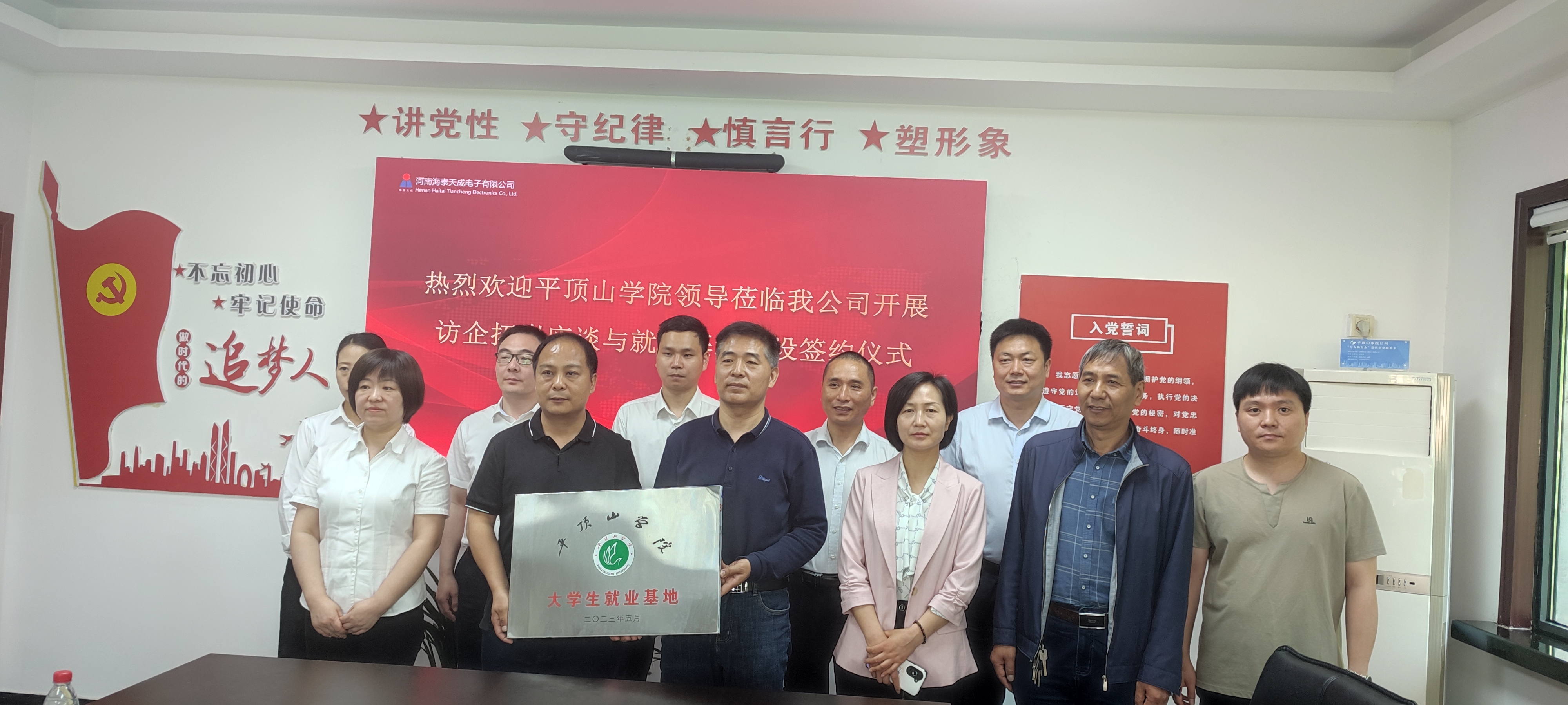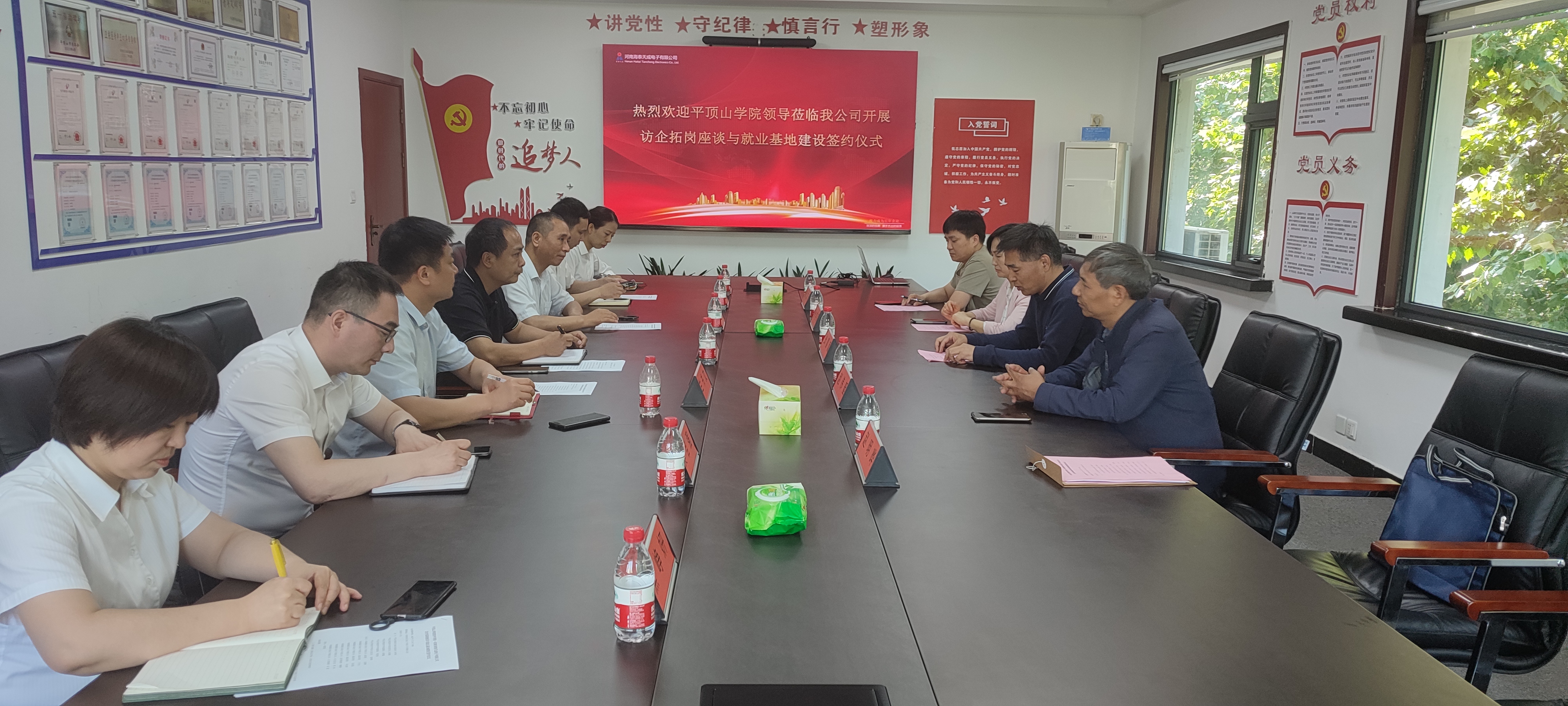 5月24日上午,​公司党委书记张喜顺、人才招聘处副处长孙学荣及​beats365唯一官网副经理赵伟艇、褚龙现一行先后赴河南海泰天成电子有限公司、领航信息科技有限公司开展访企拓岗促就业活动,将学习贯彻习近平新时代中国特色社会主义思想主题教育成果转化为实践行动,推动公司重点工作,提升毕业生就业质量。