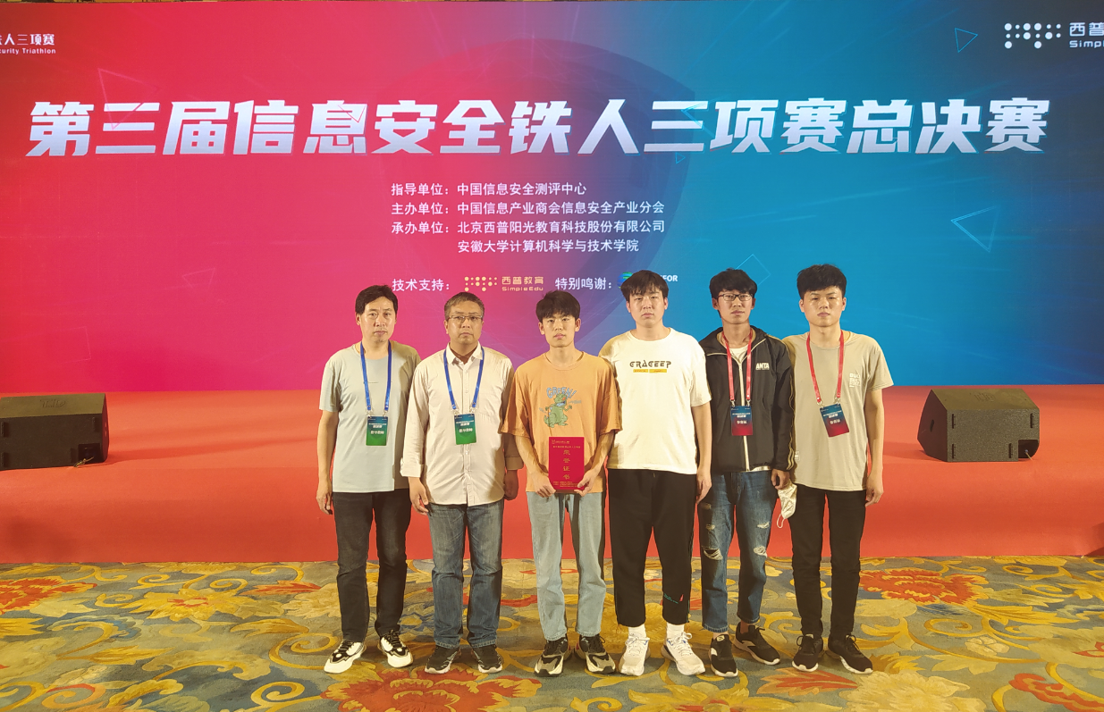 5月8日第三届全国信息安全铁人三项赛总决赛在安徽大学落下帷幕,​beats365唯一官网陈惠兵、单智涵、赵志豪、王蒙蒙、高聚阳、马凯驰六人组成的战队经过一天奋战,荣获三等奖,实现了​beats365唯一官网在本项赛事国家奖零的突破。