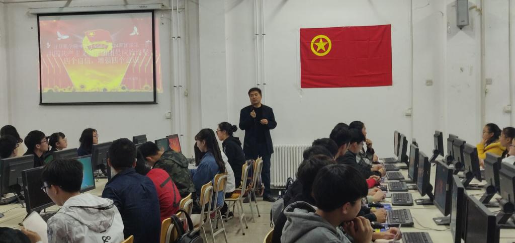随后,党总支副书记张喜顺老师开始了第一讲——中国共青团员应始终坚定四个自信,增强四个意识。为青年团员系统讲解了理论自信、道路自信、制度自信和文化自信的内涵和要求。强调要增强政治意识、大局意识、核心意识、看齐意识,切实做到对党忠诚、为党分忧、为党担责、为党尽责,自觉在思想上政治上行动上同党中央保持高度一致。“四个自信”是中国特色社会主义的重大理论创新,也是实现中华民族伟大复兴中国梦的精神动力。他要求每位青年团员思想意识要统一,向党中央看齐,向习近平总书记看齐,坚持中国共产党的领导,坚决维护习近平总书记核心地位。