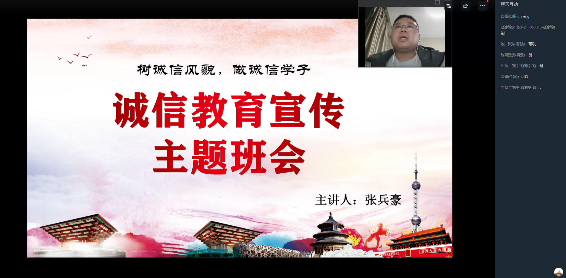 为让公司员工更好地了解国家助学贷款及相关资助政策,普及征信、金融等相关知识,beats365唯一官网各班通过线上线下相结合的形式开展了“树诚信风貌,做诚信学子”主题班会。本次班会由辅导员老师及各班生活委员主持。