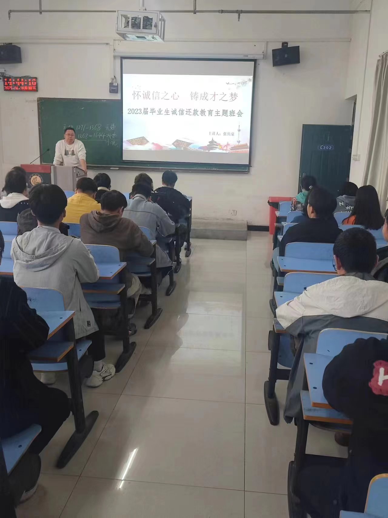 张兵豪老师首先讲解了毕业确认的流程和注意事项,针对《国家开发银行高校助学贷款约定与承诺书》、《国家开发银行高校助学贷款承诺书》、《国家开发银行国家助学贷款毕业确认表》进行了全面学习并签字确认。强调违约造成的不良后果,提醒同学们注意支付本息的时间节点。同时对如何提前还款及还款流程进行了讲解,统一学习了《支付宝还款操作指南》。通过例举老员工贷款违约真实案例,如拿不回购房定金的王某、失信的李某等,给同学们讲解了个人征信的相关知识,强调个人征信在当今社会的重要性,提醒同学们珍惜个人信用,树立诚信还款意识,按时还款。
