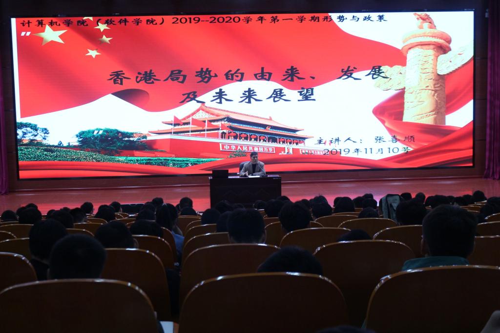 在形势政策课中,张喜顺从目前香港局势的由来、香港局势的发展、香港局势的未来展望及我们应吸取的经验教训四个方面进行了讲解。重点梳理了香港回归后出现一系列问题的历史根源。分析了香港面临的外部势力干涉现状及香港内部的深层次社会矛盾。提出了香港未来发展应着力解决好的问题。最后从实现中华民族伟大复兴的高度,提出了我们国家在发展中应重点做好的几个方面。