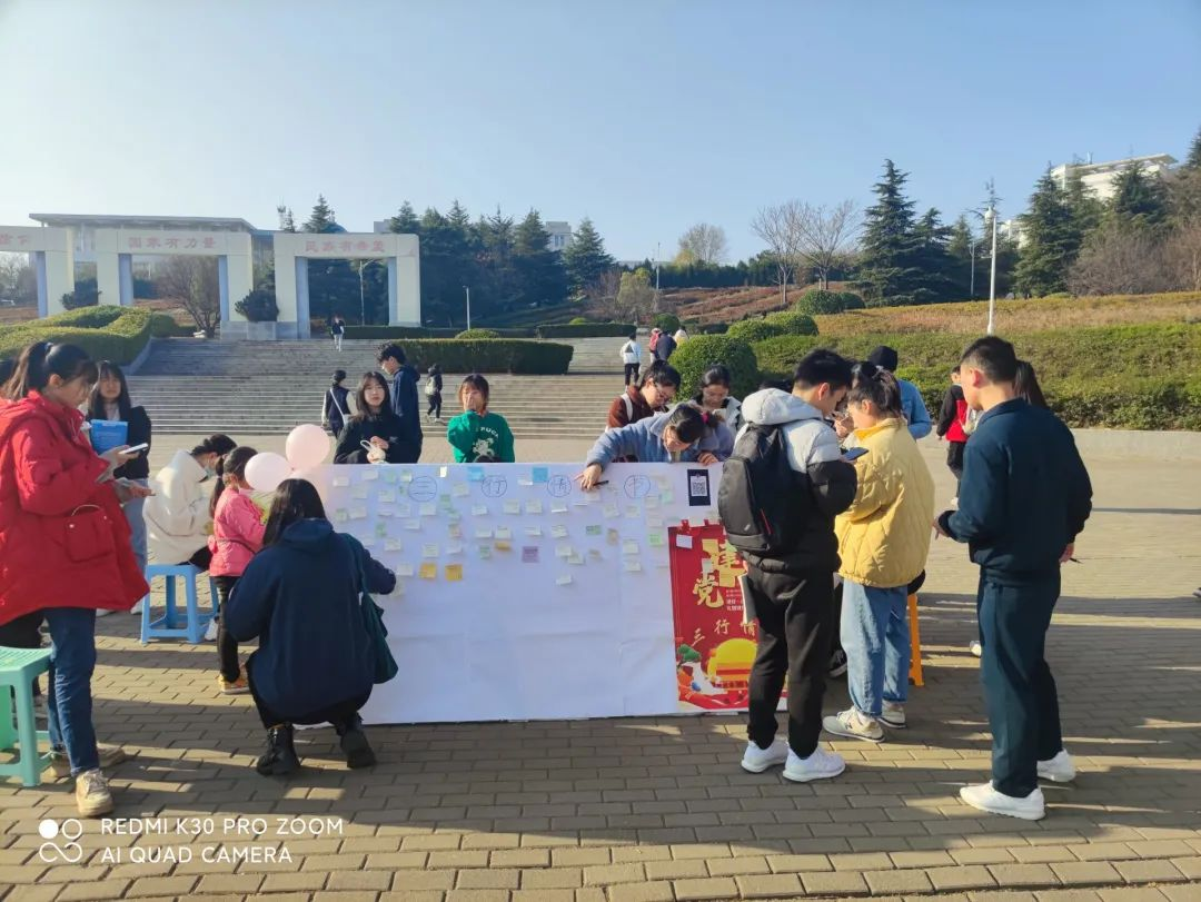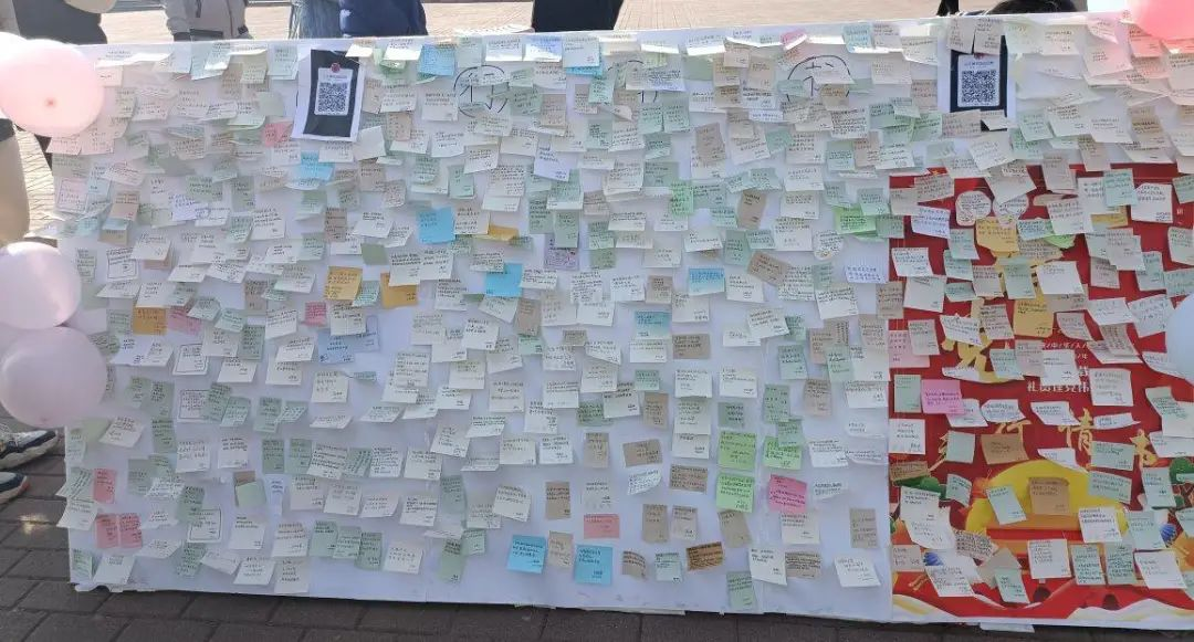 活动中,大家满怀热情把心中的话语写在便利贴上,表达自己对党和祖国的美好情感和祝福。