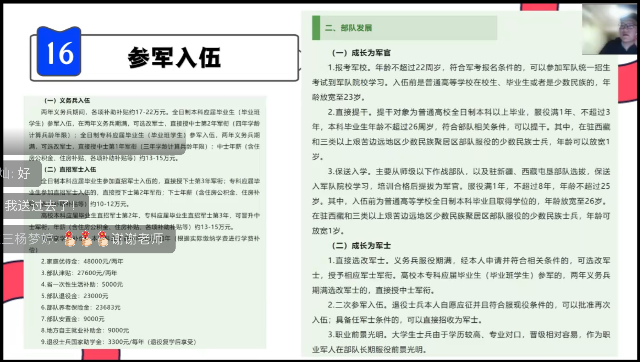 为响应国家征兵政策,推动老员工征兵入伍工作的深入开展,beats365唯一官网于5月10日晚开展征兵政策宣讲会,辅导员杨玉峰主讲,2020级员工参加。