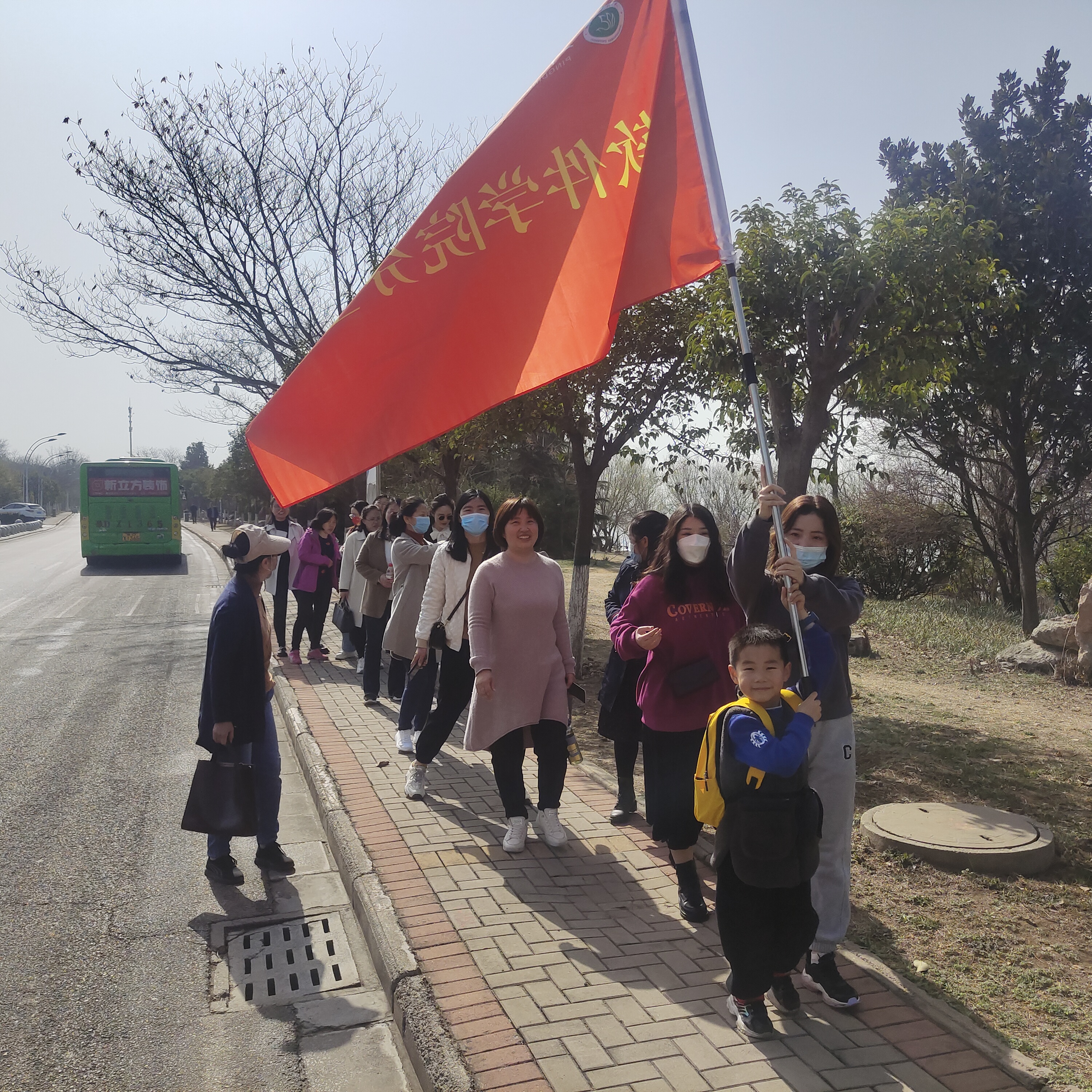 活动前期,分工会制定详细的活动方案并实地考察设计了健步走路线。上午十点,全体女教工在科技楼北侧广场集合,分工会主席张喜顺同志向参加活动的同志表示节日的祝贺,并嘱咐大家注意安全。春风拂面,公司分工会的旗帜迎风飘扬,健步走活动正式开始。同志们精神抖擞,尽情享受着春日的阳光,一路欢声笑语,一路欢欣鼓舞。