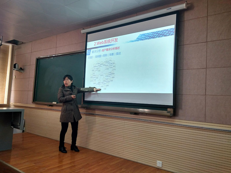 会上,马丽教授做为主讲人从摘要、Web开发、HTML开发、移动开发四个方面,以本人指导的员工论文为例,为2017届本科毕业论文指导教师讲解了本科毕业论文撰写各个环节要注意的问题以及论文撰写规范、分享了自己指导本科毕业论文撰写的经验。