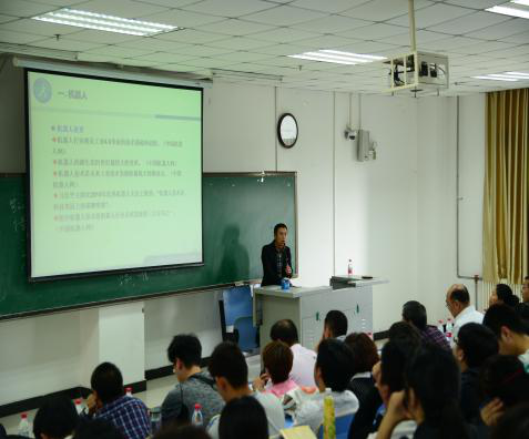 为了让公司员工更多的了解前言知识,增强就业竞争力,2016年9月29日公司鲍义东博士在图书馆L301特为公司老师和部分员工代表讲一场学术报告,报告涉及到机器人、医疗机器人虚拟手术仿真系统、基于力反馈技术的虚拟手术系统研究热点等三大方面;其中提到用机器人做手术,充分利用机器人的高精密性。