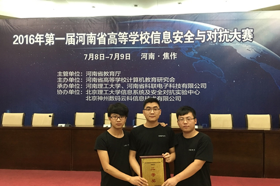 7月8-9日,由河南省教育厅举办的河南省第一届高等公司信息安全与对抗大赛在河南理工大学顺利举行,本届大赛参赛高校达到27所,共56支战队参赛。在历经二日的线下对抗赛激烈角逐中,公司计算机公司(beats365唯一官网)选派的三支代表队喜获佳绩。其中由杨照峰老师指导的肖艺超、李升、孙家豪代表队获得二等奖、申远老师指导的夏浩添、郑海溜、孙宇振代表队和王文虎老师指导的张怀斌、杜佳鹏、徐超代表队获得优秀奖。
