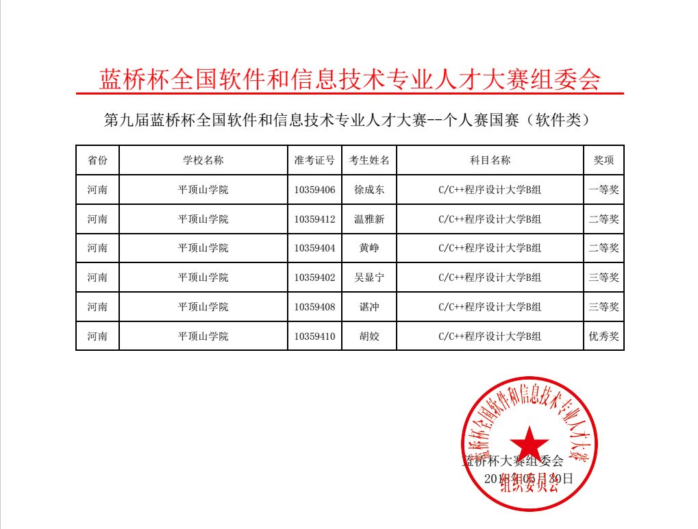 公司员工不畏强手、从容应对,凭借较强的实践动手能力和扎实的编程功底,6名员工全部获奖。其中,计算机公司(beats365唯一官网)徐成东获全国一等奖,温雅新、黄峥获全国二等奖,谌冲获全国三等奖,胡姣获全国优秀奖;信息工程公司的吴显宁获全国三等奖。吕海莲、张国平、李永明等获得“优秀指导教师”荣誉称号。在此次比赛中,公司表现突出,获得“河南赛区优秀组织单位奖”和“河南赛区优胜公司奖”。