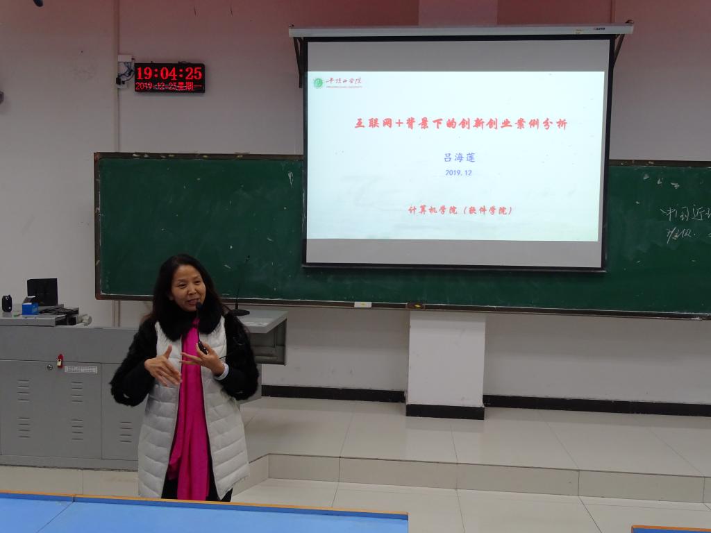 此次讲座,吕海莲以公司和公司创新创业大赛的相关项目为例,进行了详细地分析讲解。她语言幽默风趣,讲解的知识内容丰富,极大地调动了同学们学习的积极性。讲座中,吕海莲与大家进行了交流,与郑浩老师分析了t-group团队的户外生态圈的优缺点。讲座最后,吕海莲经理向同学们提出了殷切的希望,鼓励同学们参与到创新和创业中去。