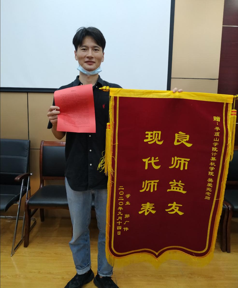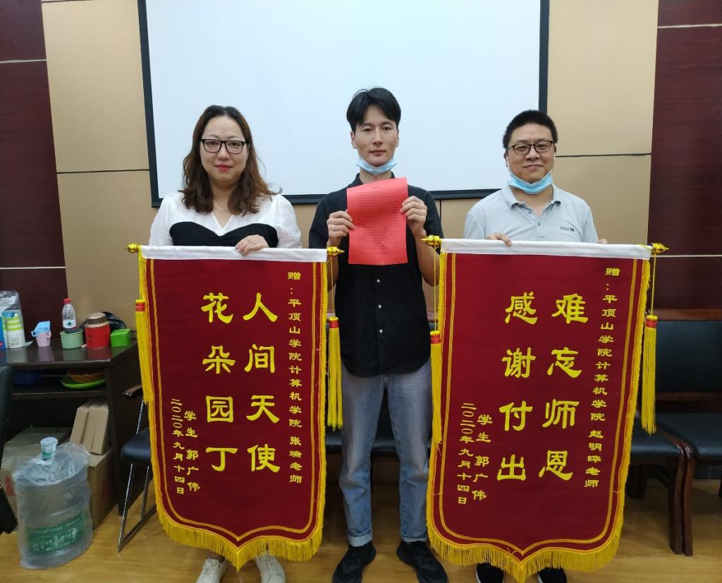 9月14日,软件工程专业往届毕业生郭广伟专程回到母校,向公司的樊爱宛、赵明晔和张瑞等三位老师送来了锦旗和感谢信,对各位老师的教育教学工作以及对其学业的悉心指导和辛勤付出表达了衷心的感谢,同时对公司的培养表示由衷的感激。