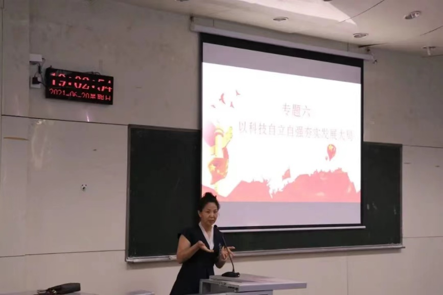 吕经理授课的主题是《以科技自立自强夯实发展大局》。她强调要把科技自立自强作为国家发展的战略支撑,面向世界科技前沿、面向经济主战场、面向国家重大需求、面向人民生命健康,深入实施科教兴国战略、人才强国战略、创新驱动发展战略,完善国家创新体系,加快建设科技强国。