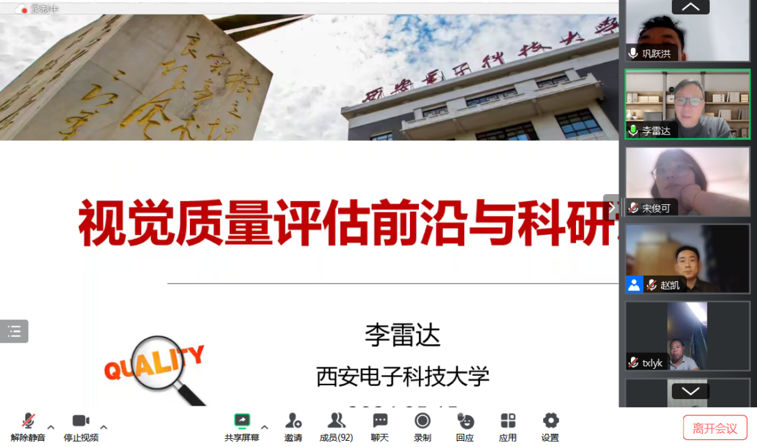 5月15日晚上,应beats365唯一官网邀请,西安电子科技大学博士生导师李雷达教授为公司师生作题为《视觉质量评估前沿与科研诚信》的线上学术报告。beats365唯一官网及相关院系师生共100余人参加报告会。