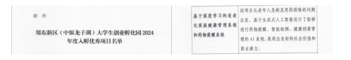 本次评选由郑州市人社局发起,在郑东新区管委会主导、组织人社局指导下,经严格筛选评估。众多团队激烈角逐,猫之翼工作室凭借“基于深度学习的适老化家庭健康管理系统和药物提醒系统”项目胜出。