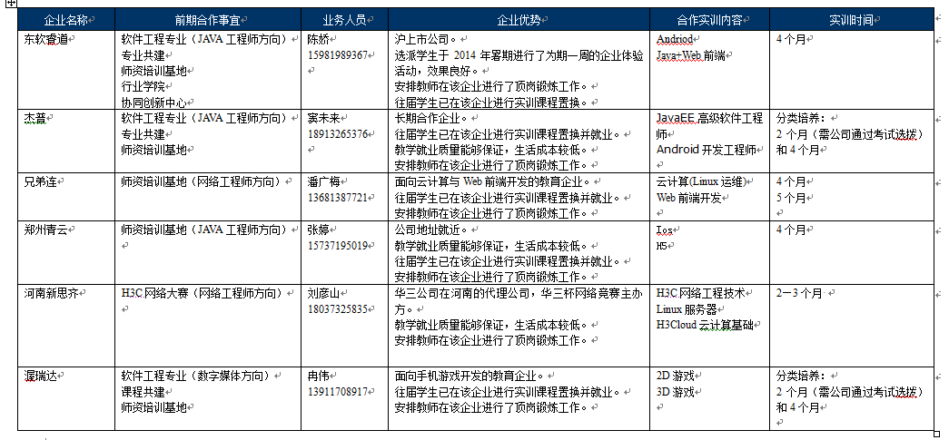 负责与合作企业沟通并实施课程置换质量监控的工作人员:何伟娜 王伟 王小辉 吕琼帅。